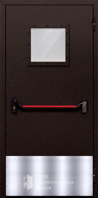 Маркировка Противопожарная Однопольная дверь с квадратным стеклом ДПМ-01-EIW90 с антипаникой
