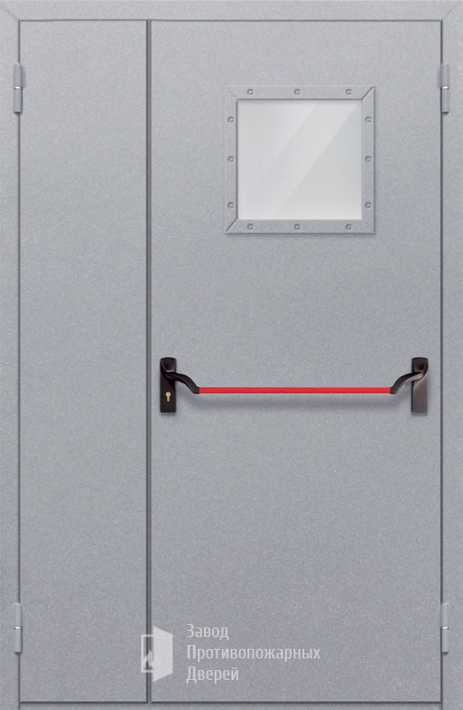 Маркировка Противопожарная Полуторная дверь с круглым стеклом ДПМ-02-EIWS60 с антипаникой