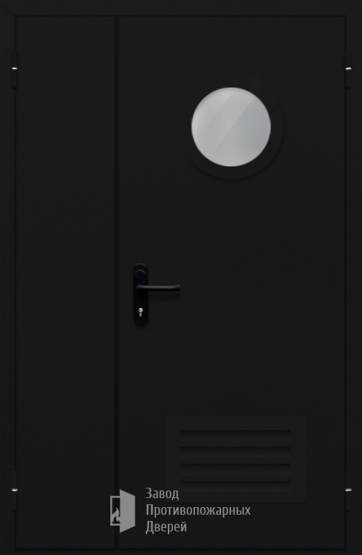 Противопожарная Полуторная дверь с круглым стеклом ДПМ-02-EIW30 с решеткой |
